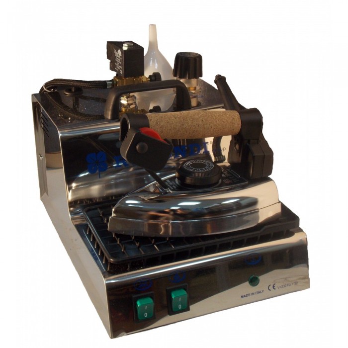 Итальянский парогенератор с утюгом Rotondi. Корпус из нержавеющей стали. Бойлер 2 литра. Лёгкий утюг 1,5 кг с пробковой ручкой.